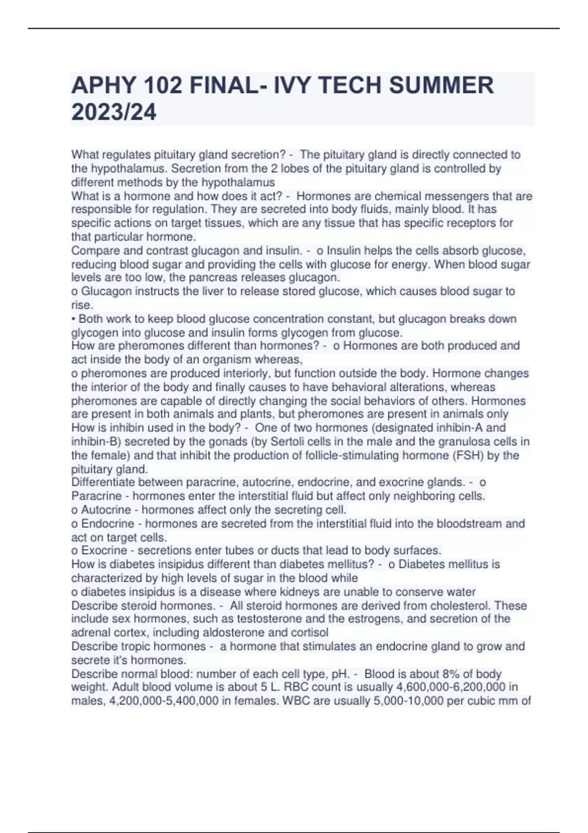 APHY 102 FINAL IVY TECH SUMMER 2023/24 APHY 102 Stuvia US
