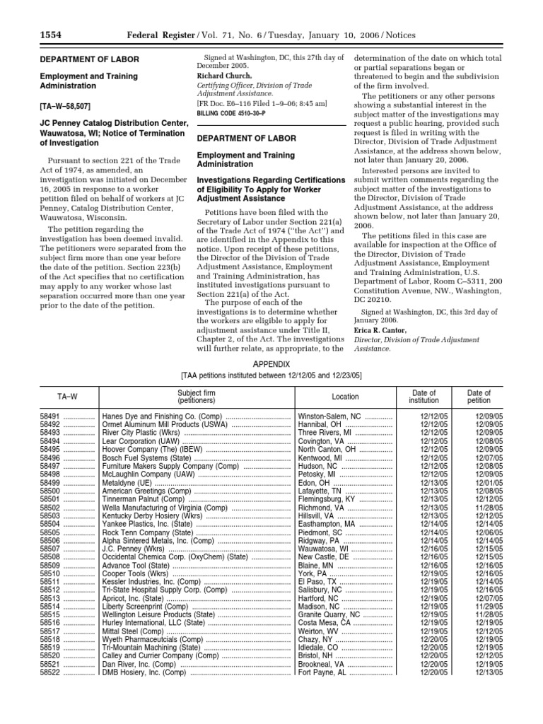 Notice Adjustment Assistance Applications, Determinations, Etc. JC