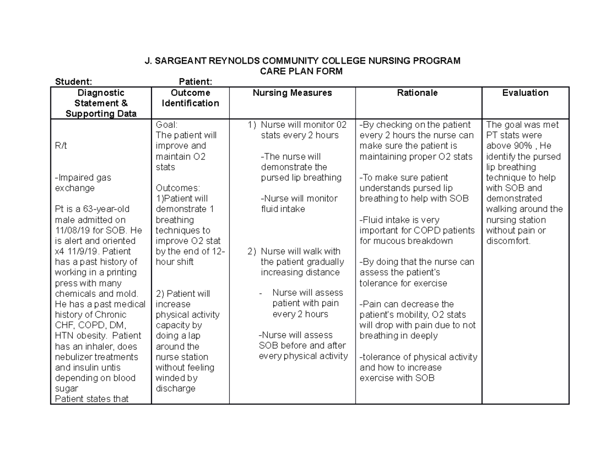 NCP and Nursing Assessment form1 J. SARGEANT REYNOLDS COMMUNITY