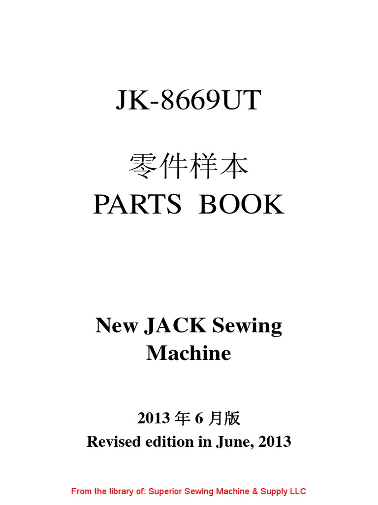 JK8669UT 零件样本 Parts Book New JACK Sewing Machine PDF
