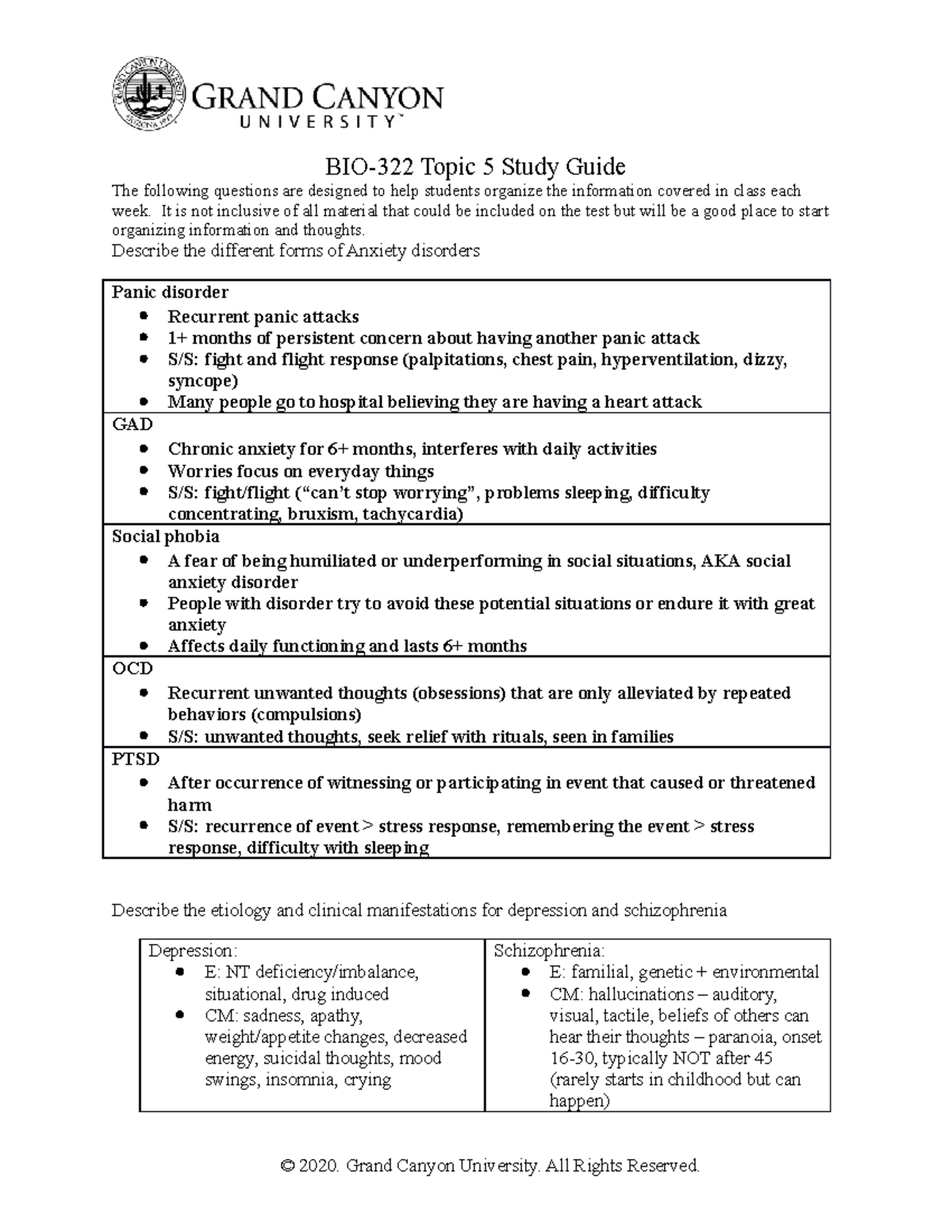 BIO322 Topic 5 Study Guide BIO322 Topic 5 Study Guide The following