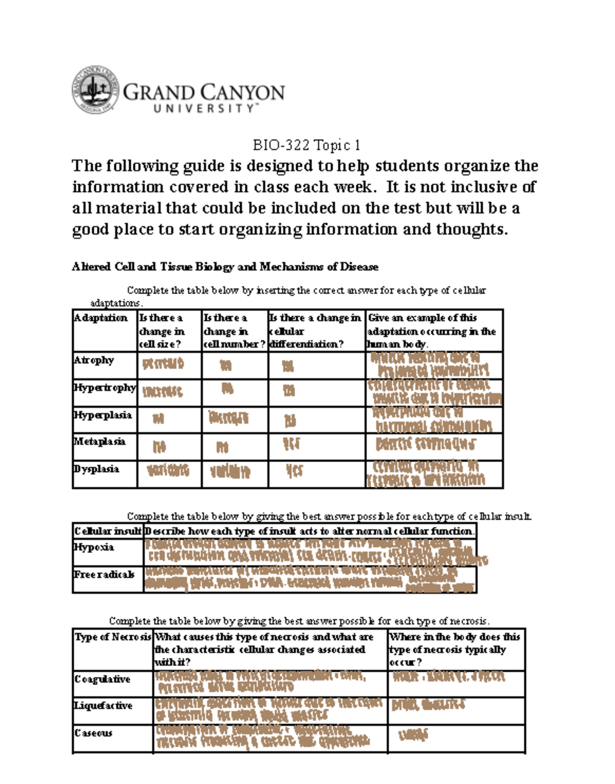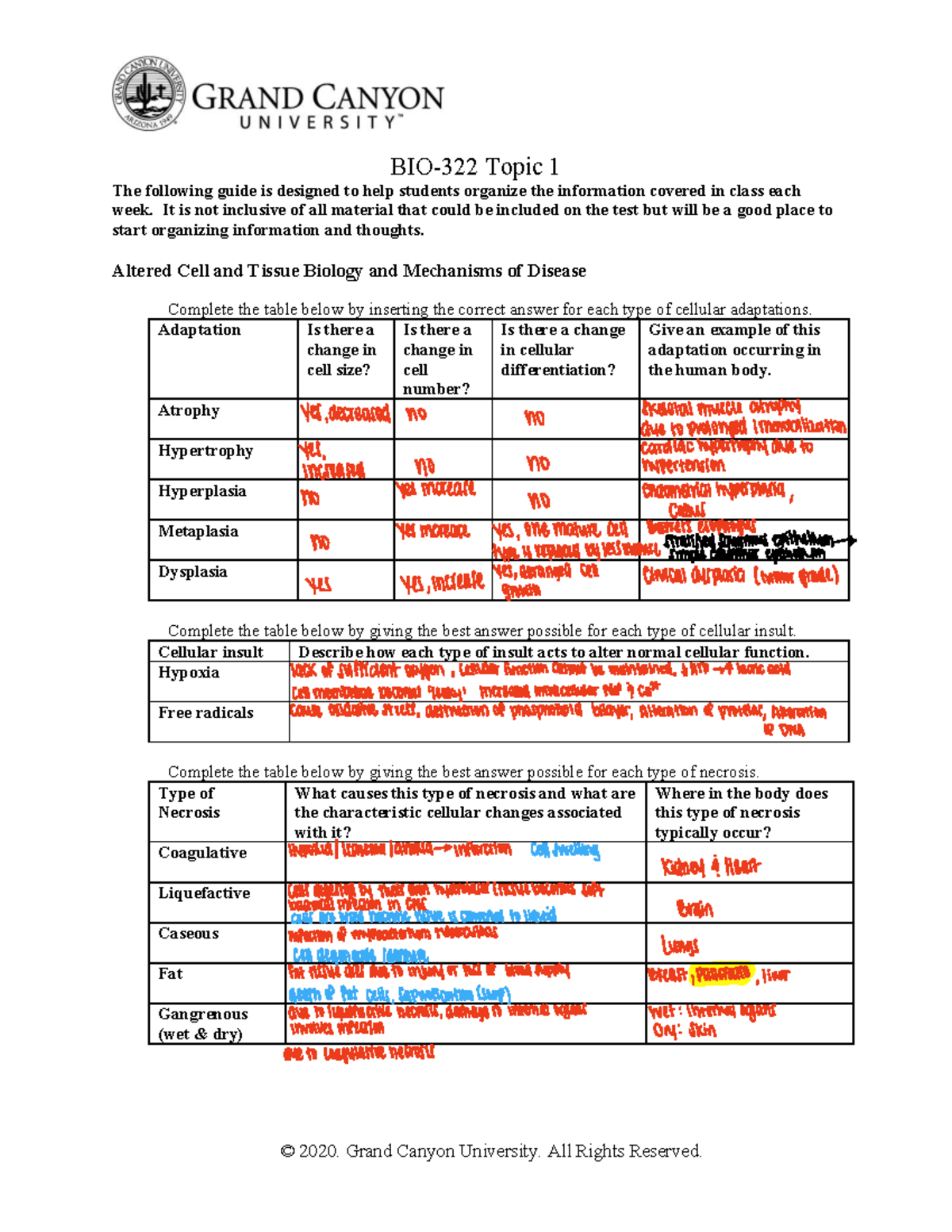 Topic 1 Study Guide BIO322 Topic 1 The following guide is