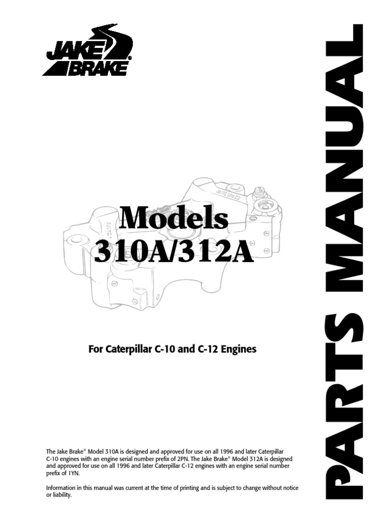 Jacobs Brake 310 312 Parts Book On Caterpillar C10 C12 022040B PDF