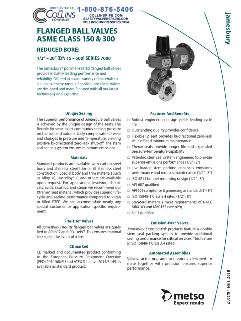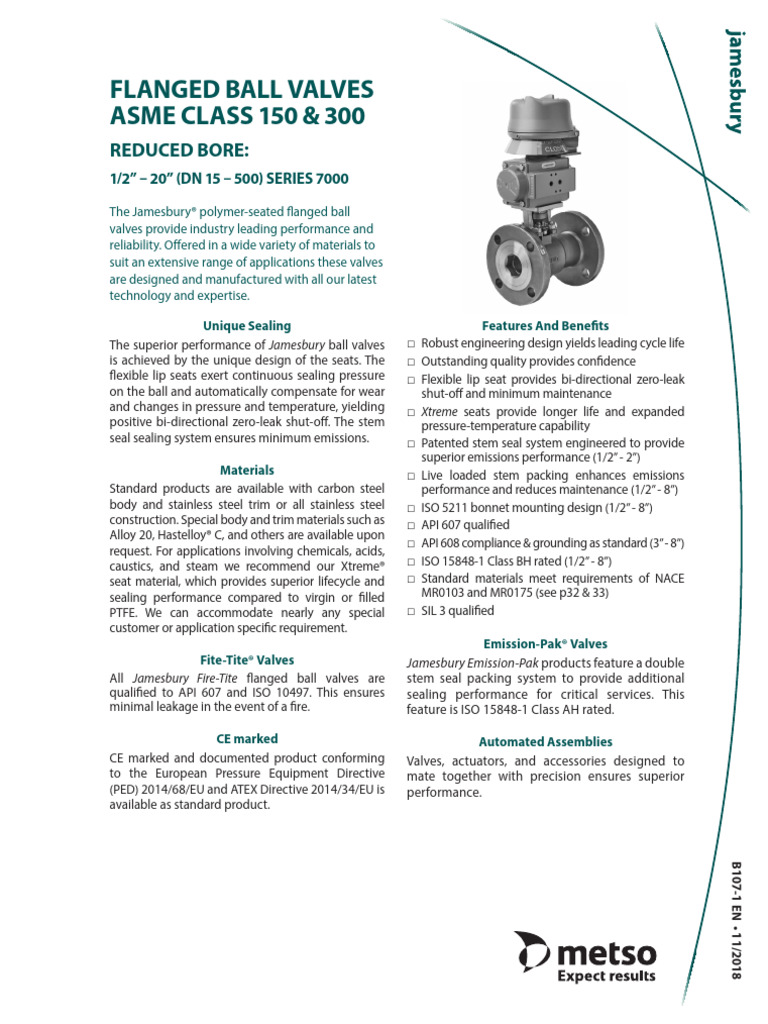 Jamesbury 7000 Series Ball Valve PDF Valve Steel