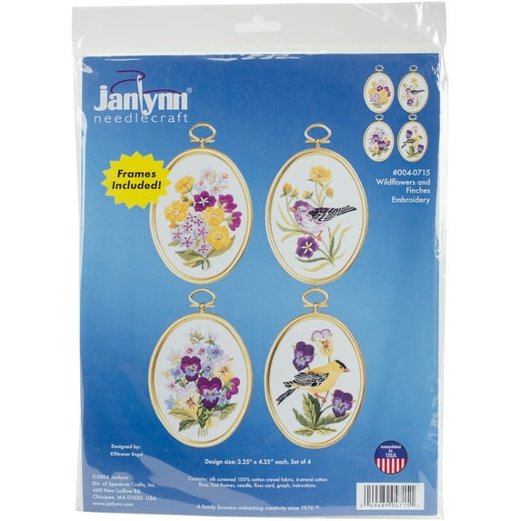 Janlynn Embroidery Kit 3.25"X4.25" Set Of 4Wildflowers & Finches