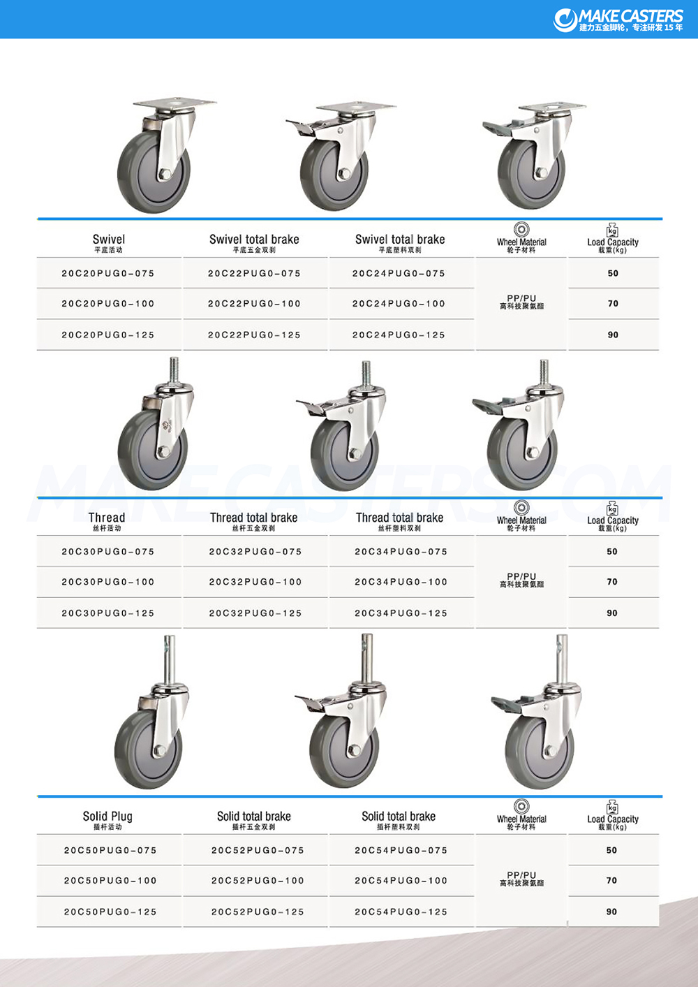 Jarvis P07KIT swivel caster kit with threaded stem, polyolefin wheel