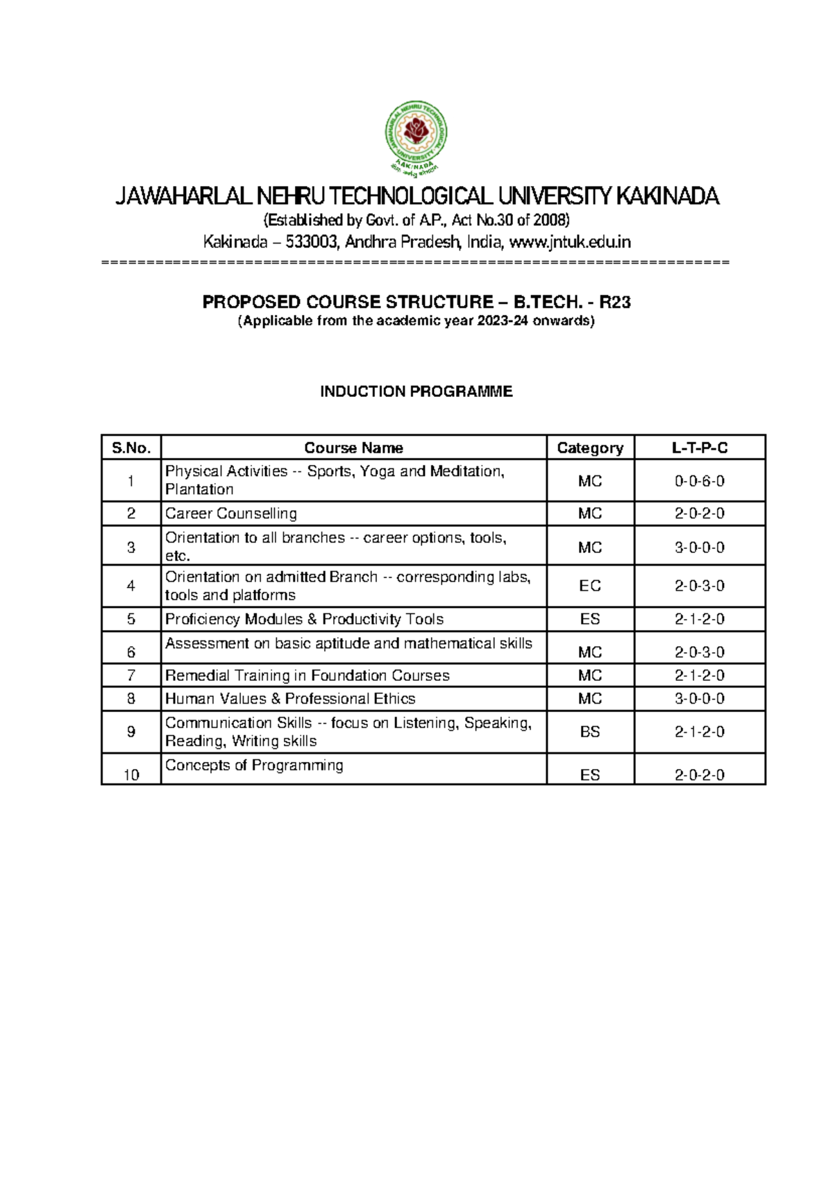B.Tech. R23 Proposed Course Strcuture JAWAHARLAL NEHRU