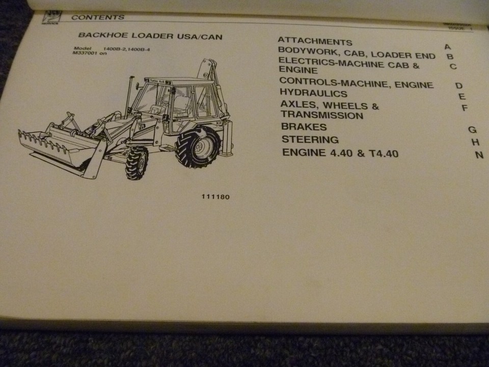 JCB 1400B2 1400B4 Backhoe Loader Factory Parts Catalog Manual S
