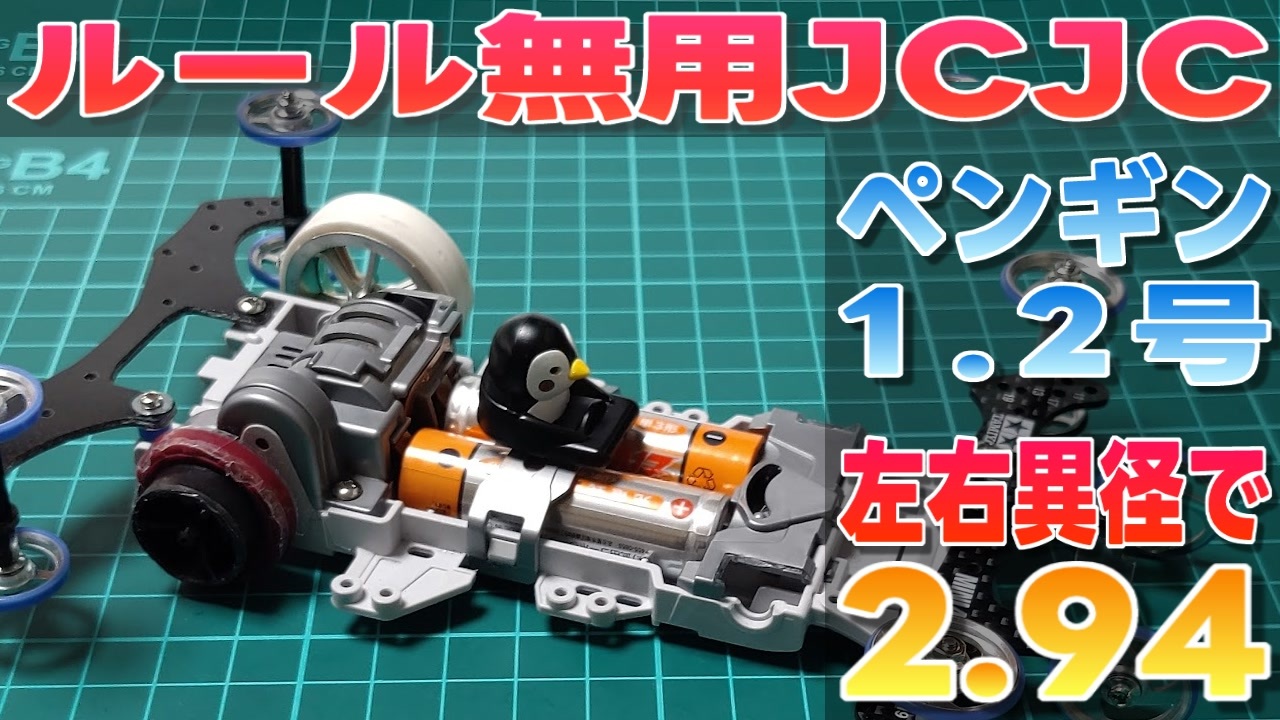 ミニ四駆 ルール無用JCJCタイムアタック その3『異径タイヤでやってみるの巻』 ペンギン1.2号 左右異径で2.94秒 ニコニコ動画
