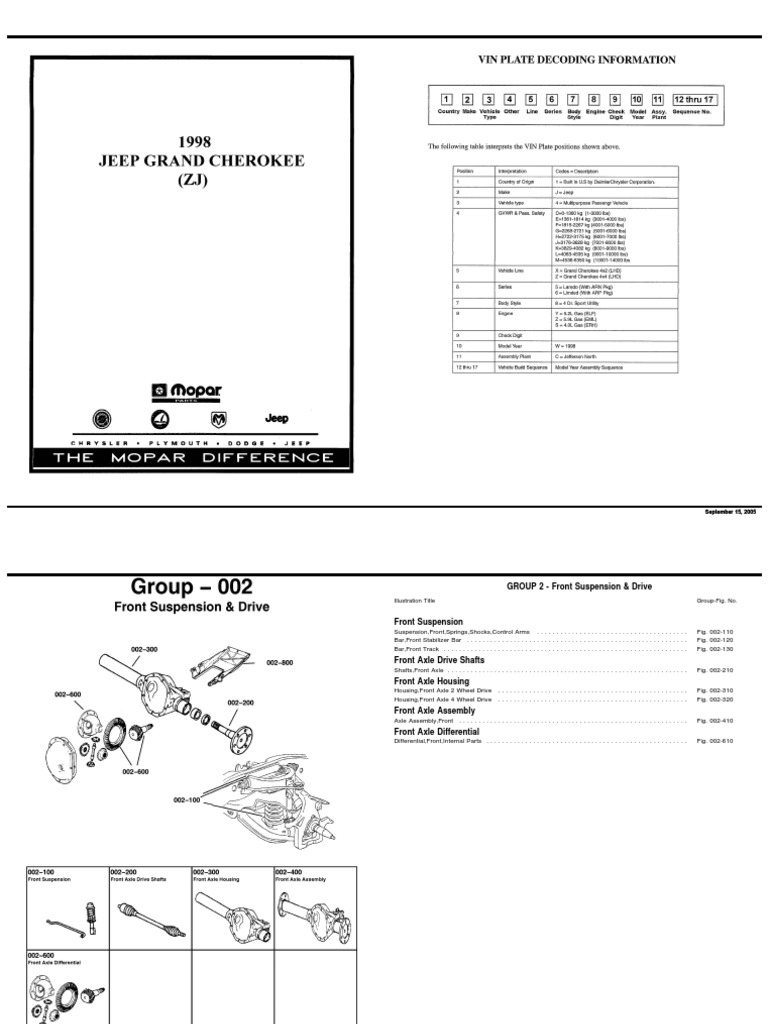 1998 Jeep Grand Cherokee (ZJ) Parts Manual PDF Axle Vehicles