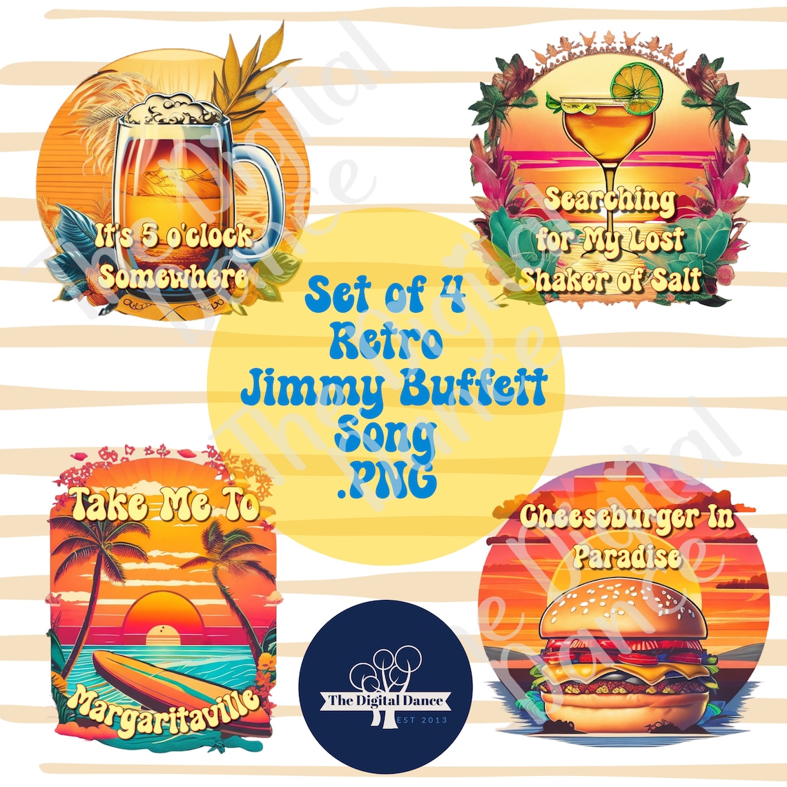 Set of 4 Jimmy Buffett Inspired Graphics Digital Download PNG Retro