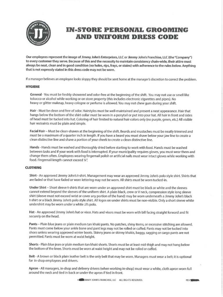 Jimmy John's Dress Code PDF Restaurant And Catering Clothing