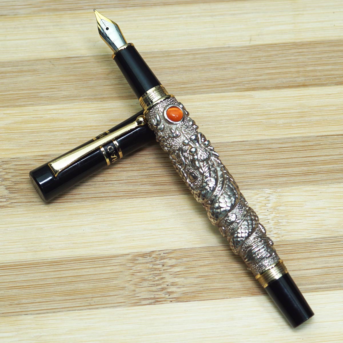 jinhao Dragon Silver Color Body With Black Color Cap and Orange Stone