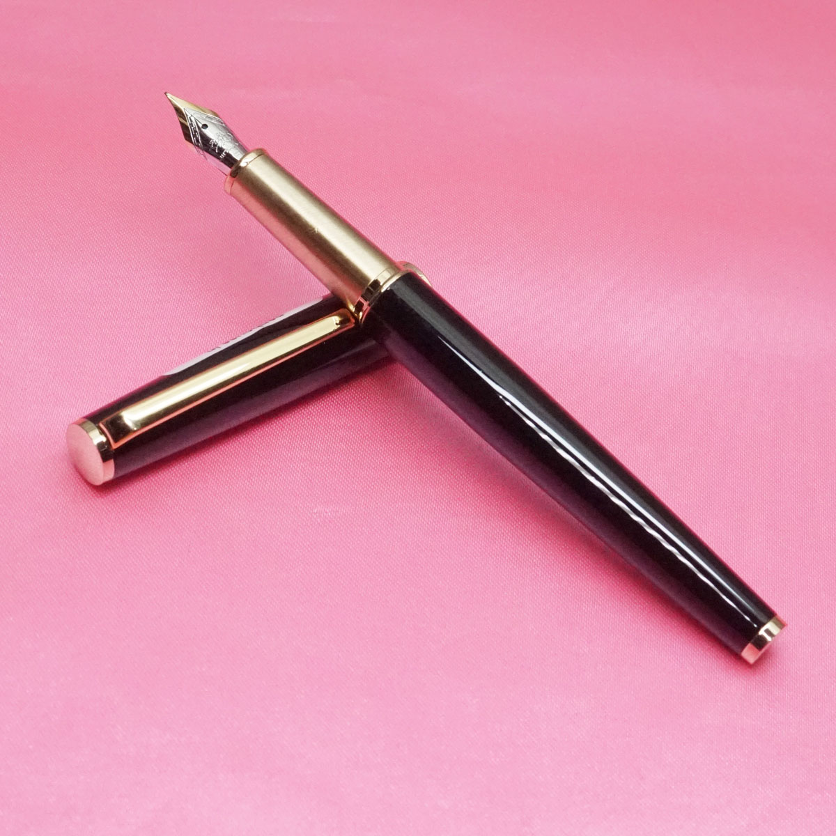 Jinhao 599 Glossy Dark Pink Color Body and Cap Silver Trims No.5.5 Fine