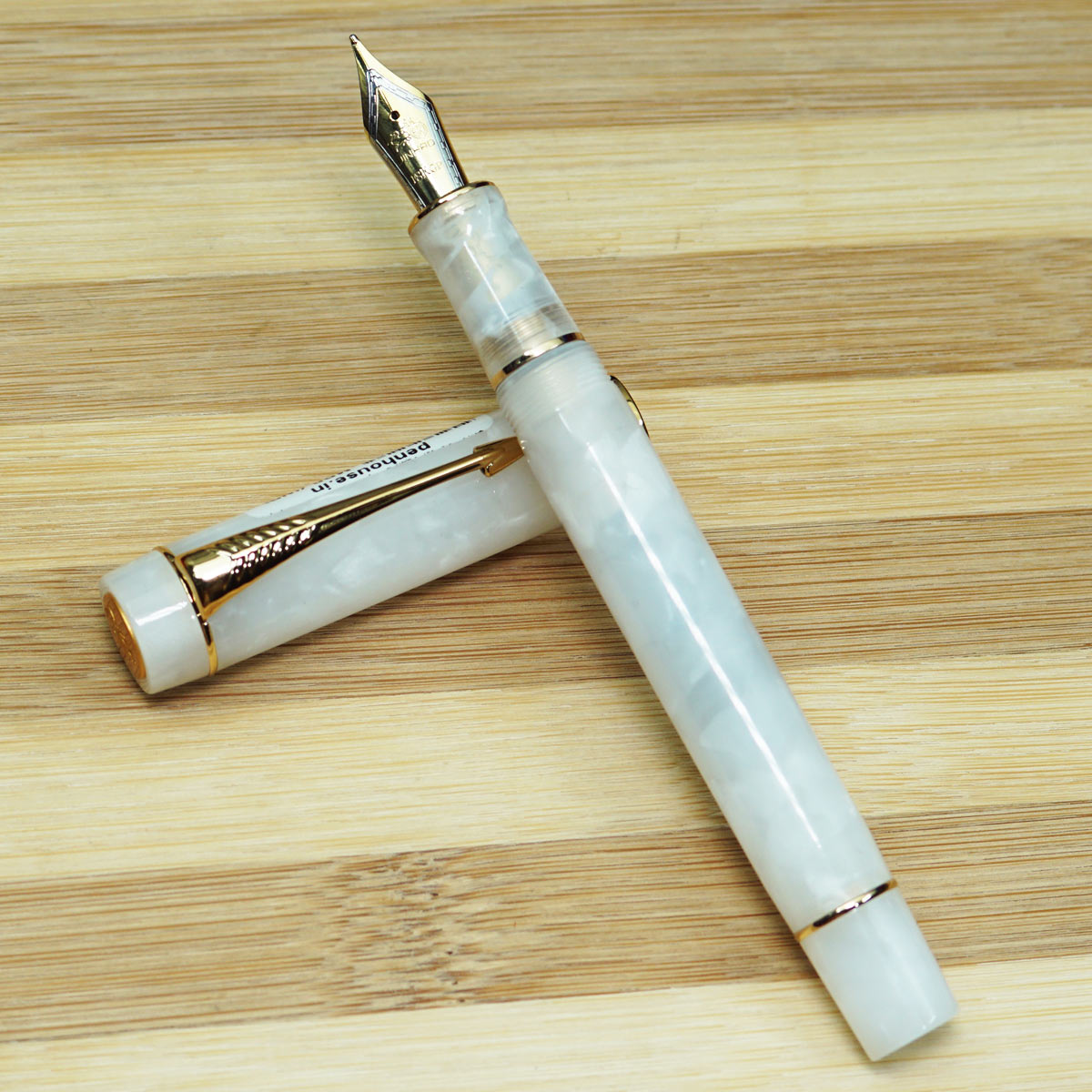 Jinhao 100 White Marble Acrylic Body With Cap And Golden Clip No 35