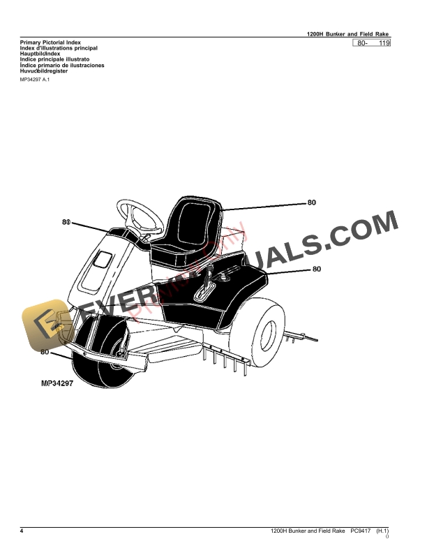John Deere 1200 Rake, Bunker and Field Parts Catalog Manual