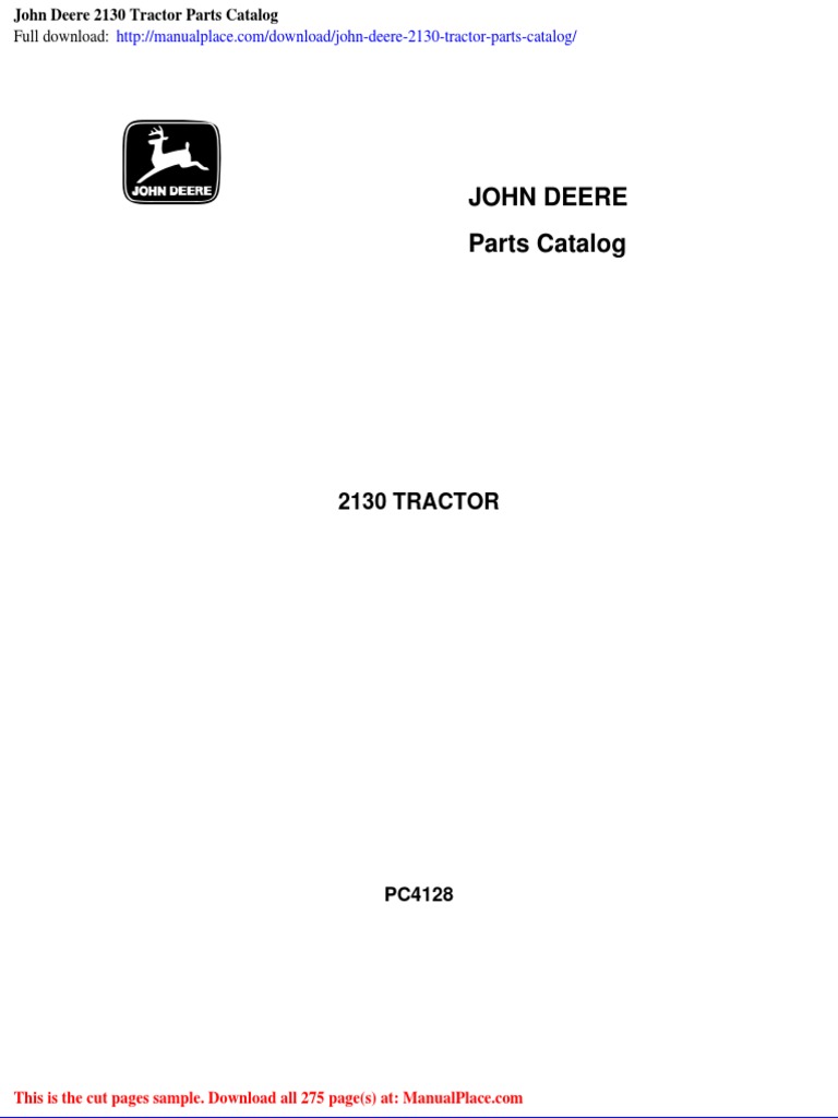 John Deere 2130 Tractor Parts Manual Pdf Download Service manual