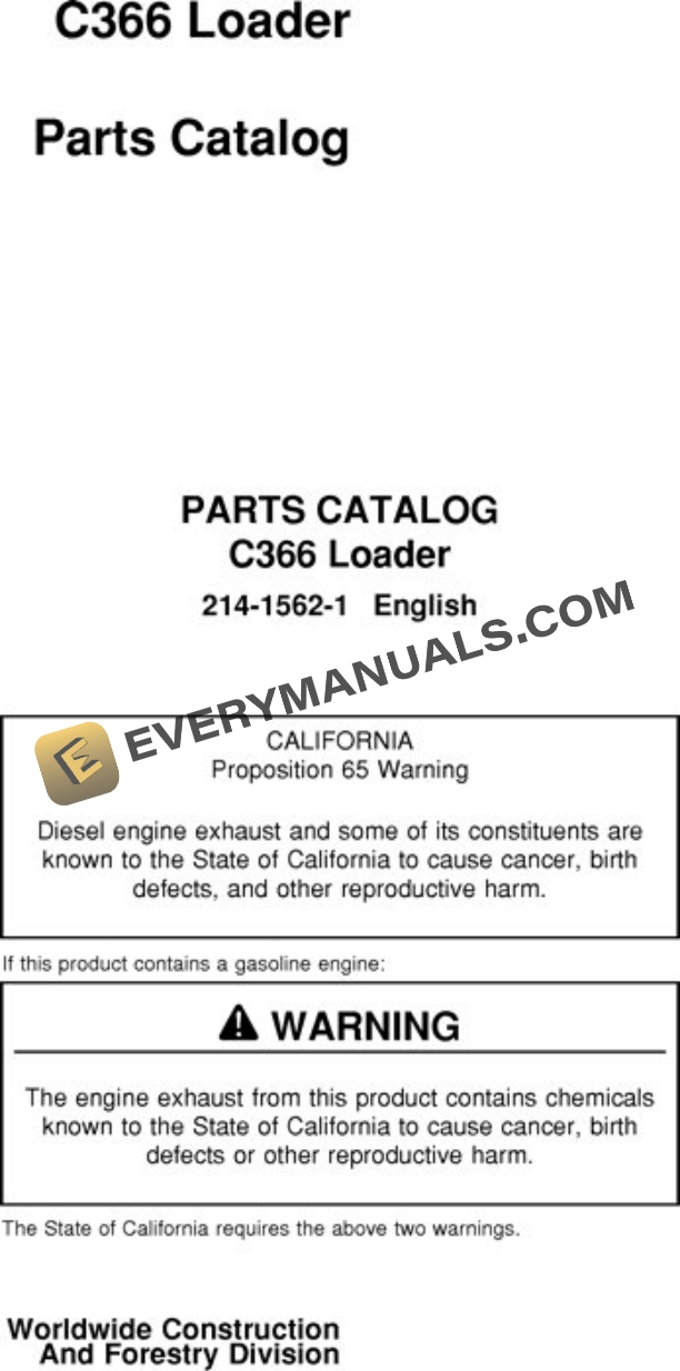 John Deere C366 Loader Parts Catalog 21415621