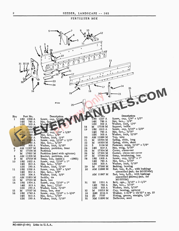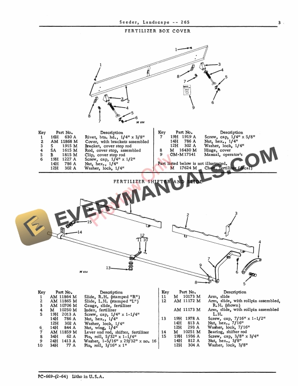 John Deere 265 Landscape Seeder Parts Catalog PC669 01FEB64