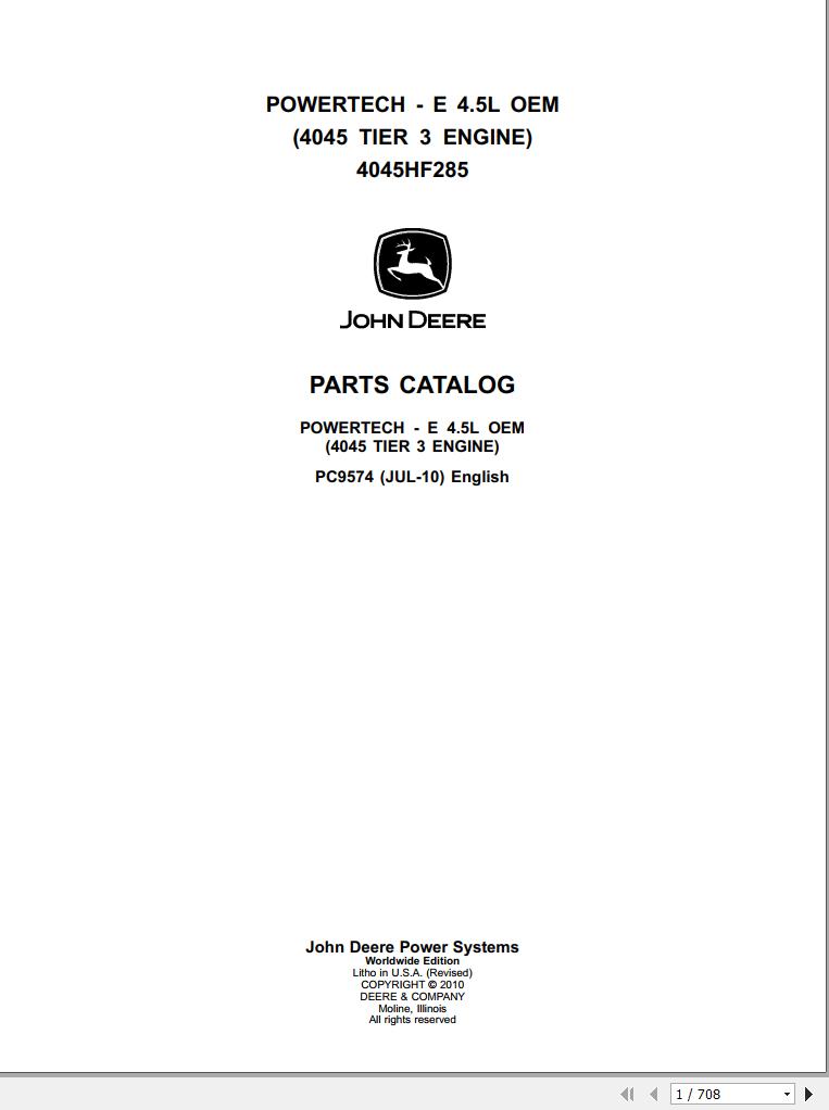 John Deere PowerTech 4.5L 4045 OEM Engines Parts Catalog