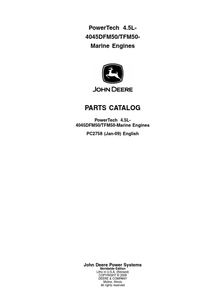 John Deere 4.5L, 4045HF485 Engines Parts Catalog Manual PC9433