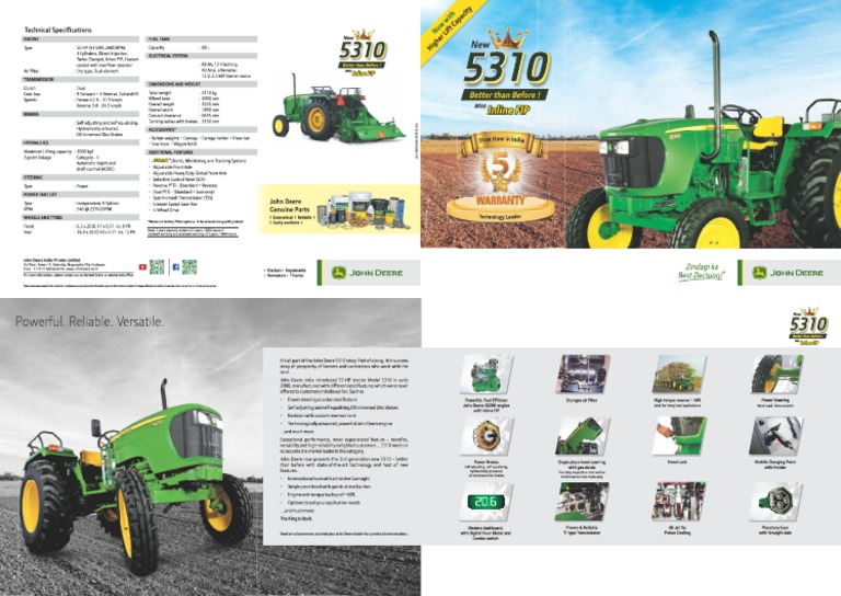 John Deere Tractor 5310 2WD 55HP Brochure English PDF