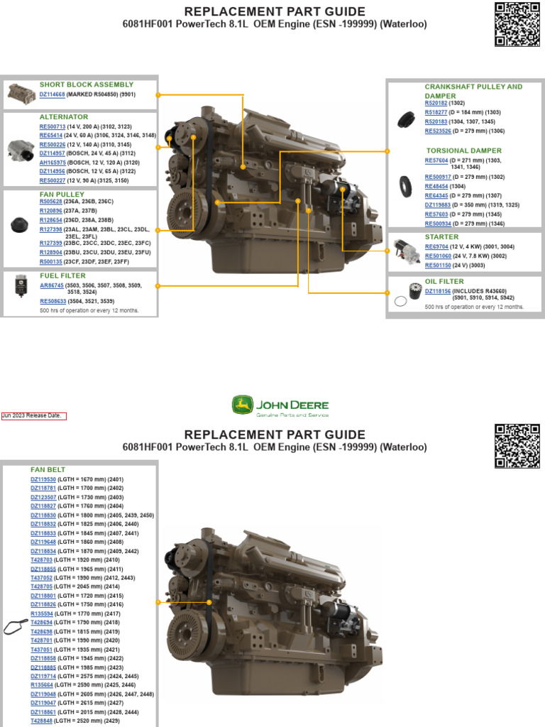 John Deere 8.1L, 6081AF001, 6081HF001, 6081HF070 Engines (SN S.N
