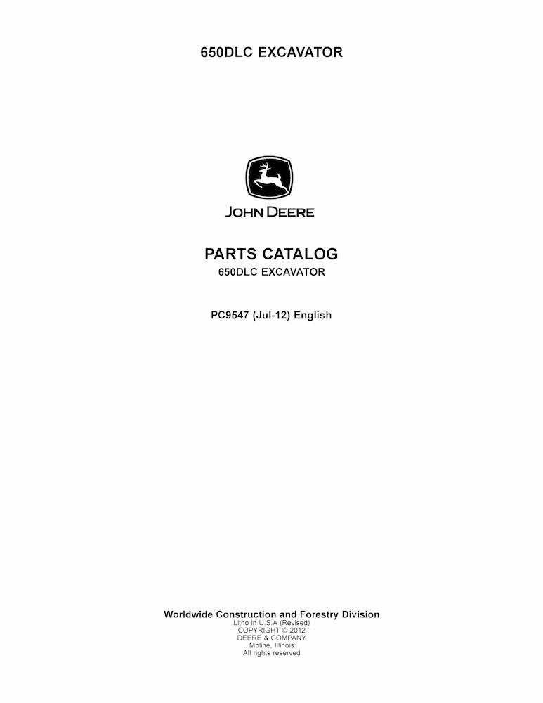 John Deere 650DLC excavator pdf parts catalog
