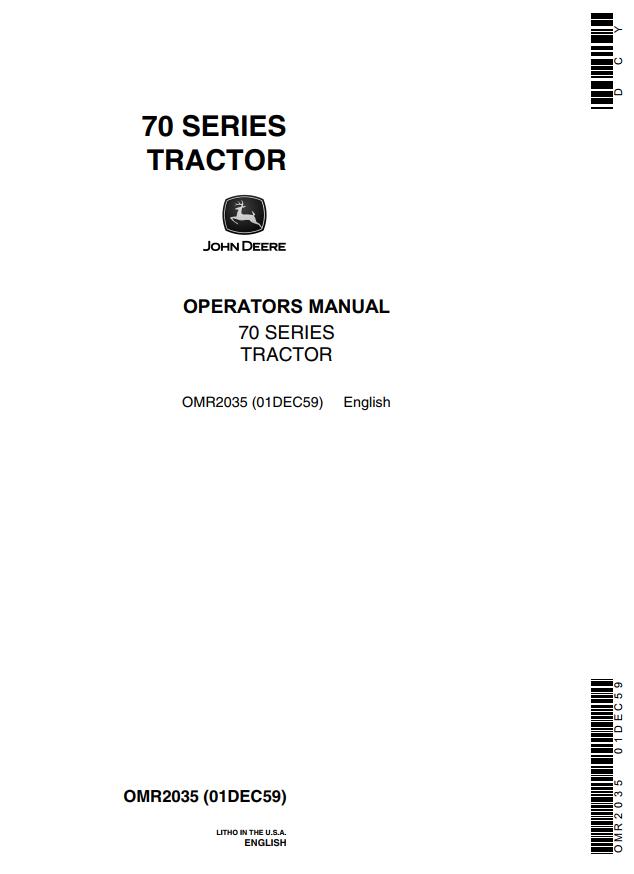 John Deere 70 Tractor Parts Manual