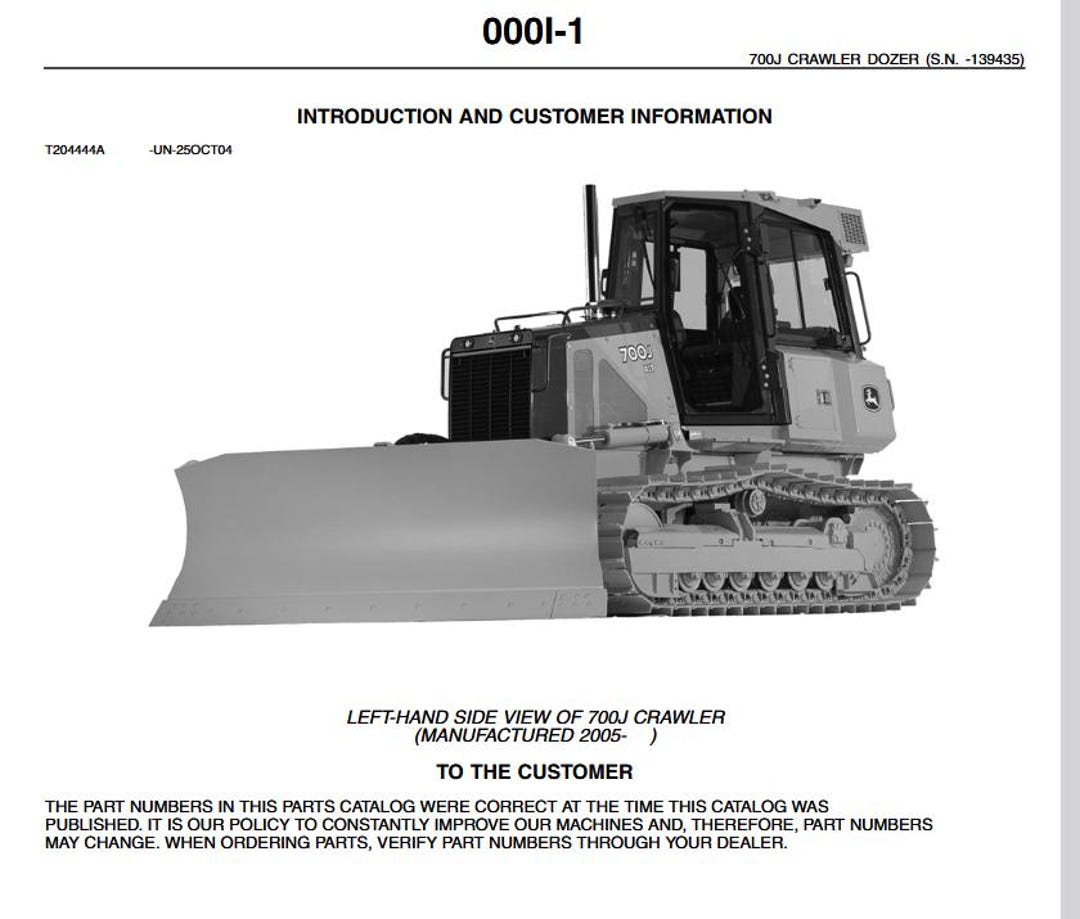 John Deere 700J Tier3 Crawler Dozer Parts Catalog (PC10040) Machine
