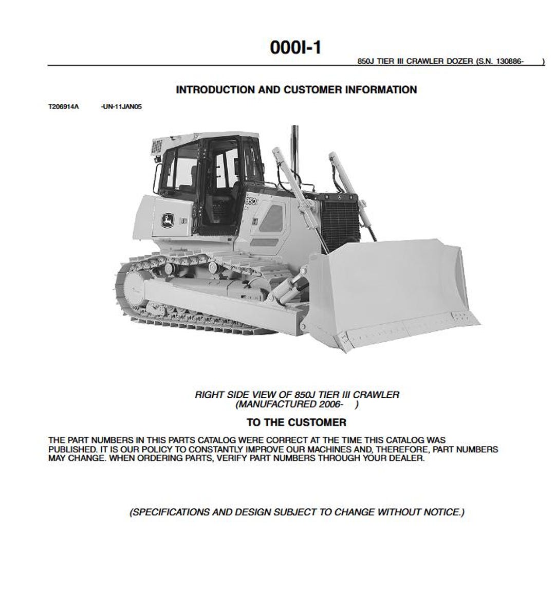 John Deere 850J Tier 3 Crawler Dozer Parts Catalog PC10009 January 2007
