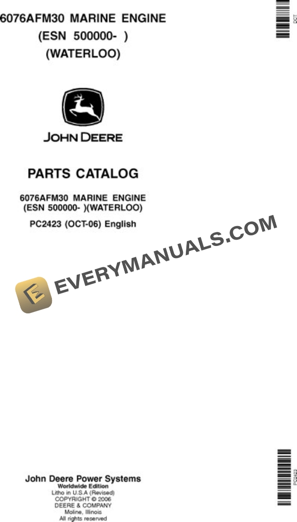 John Deere 4276D and 4276T Parts Catalog for OEM Engines and Accesories