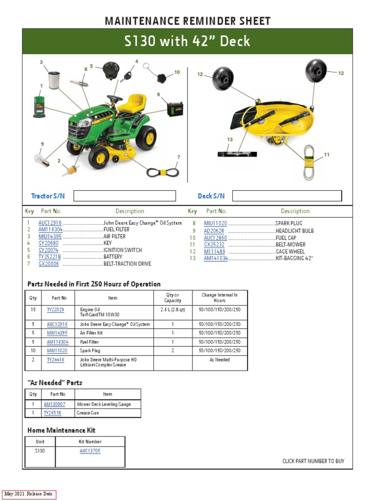 S130 With 42" Deck Maintenance Reminder Sheet PDF Transport