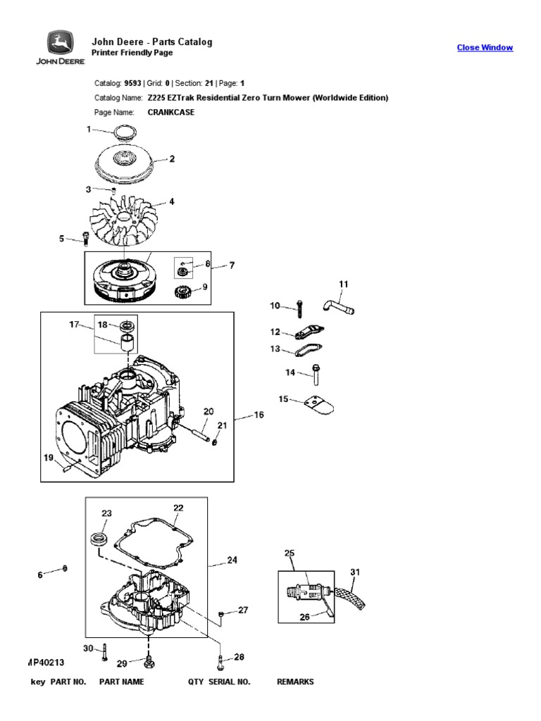 Z225 MOWER, FRONT Transaxle Housing (120001 ) EPC John Deere