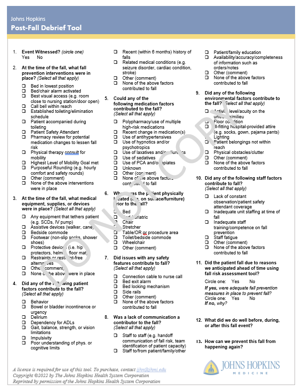 The Johns Hopkins PostFall Debrief Tool IJHN Learning System
