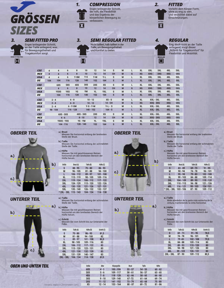 Joma Katalog 2025 / Größentabelle MS Textilveredelung