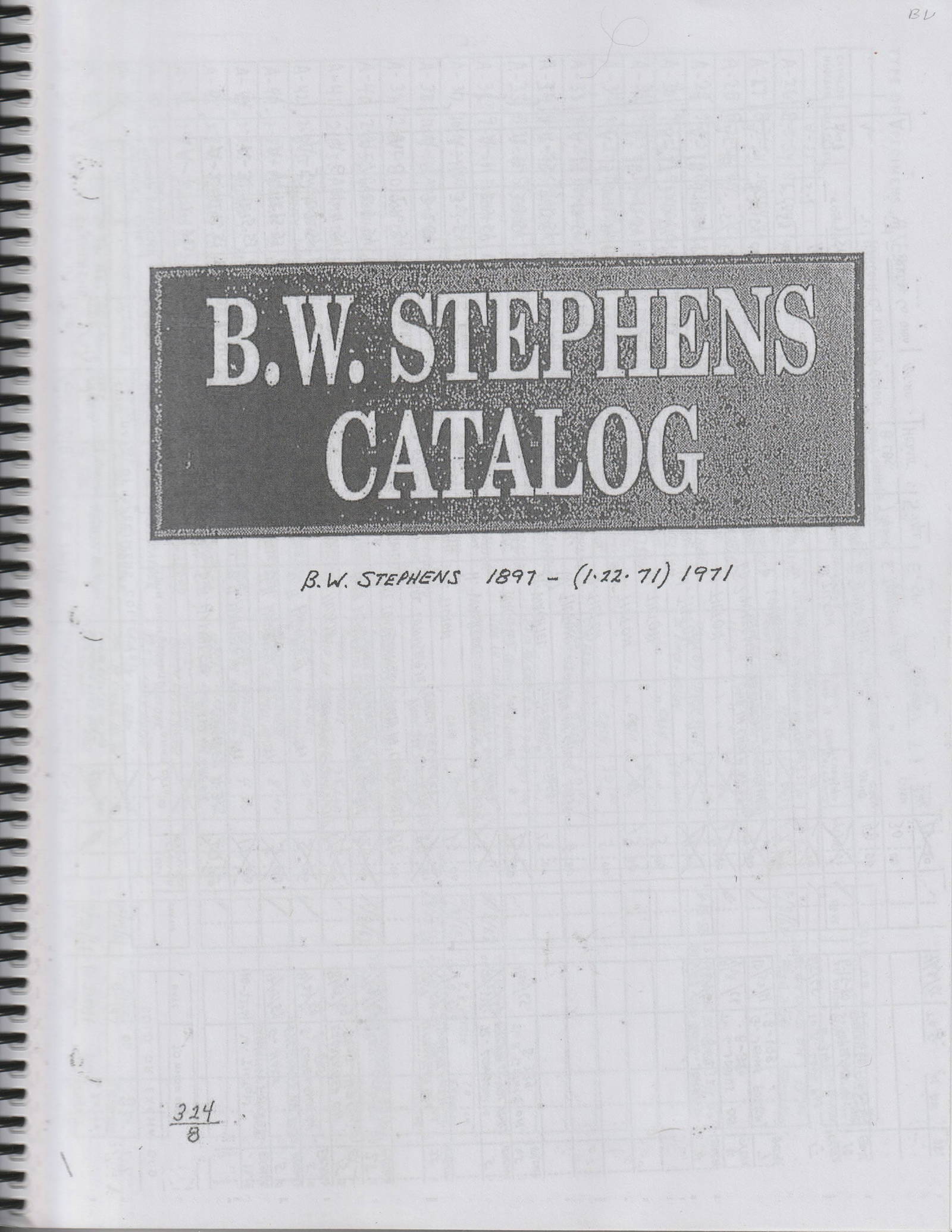 B.w. Stephens Catalog. Ex Dale Roberts. Auction