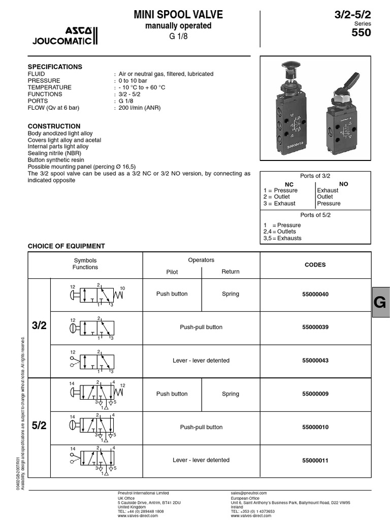 Series 550 ASCO 32 52 Mini Spool Valves G18 PDF