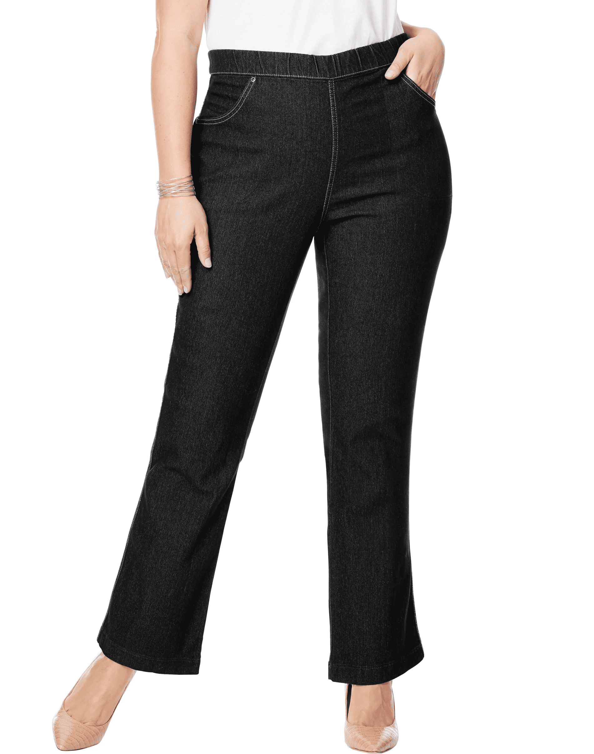 JustMySize Womens Bootcut 4 Pocket Pull On Stretch Blue Jeans Black