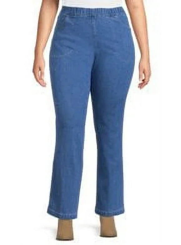 JustMySize Womens Bootcut 4 Pocket Pull On Stretch Blue Jeans Medium