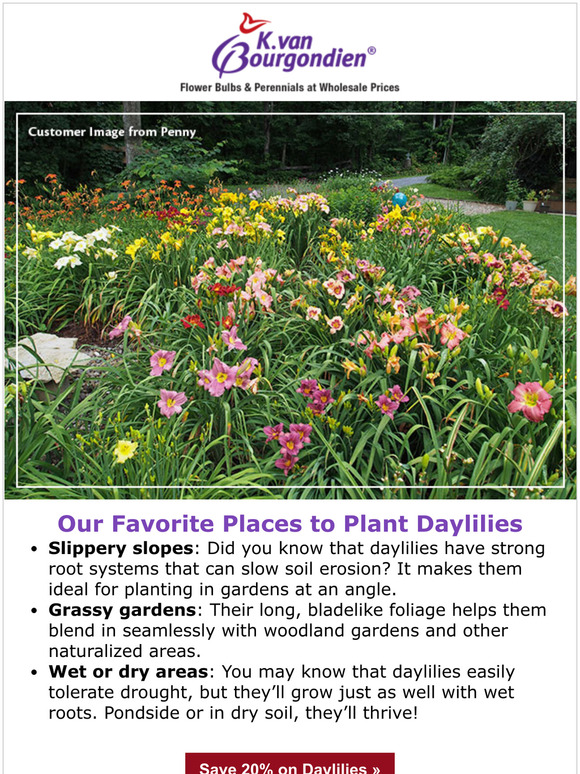 K. Van Bourgondien & Sons Our Top 3 Places to Plant Daylilies Milled