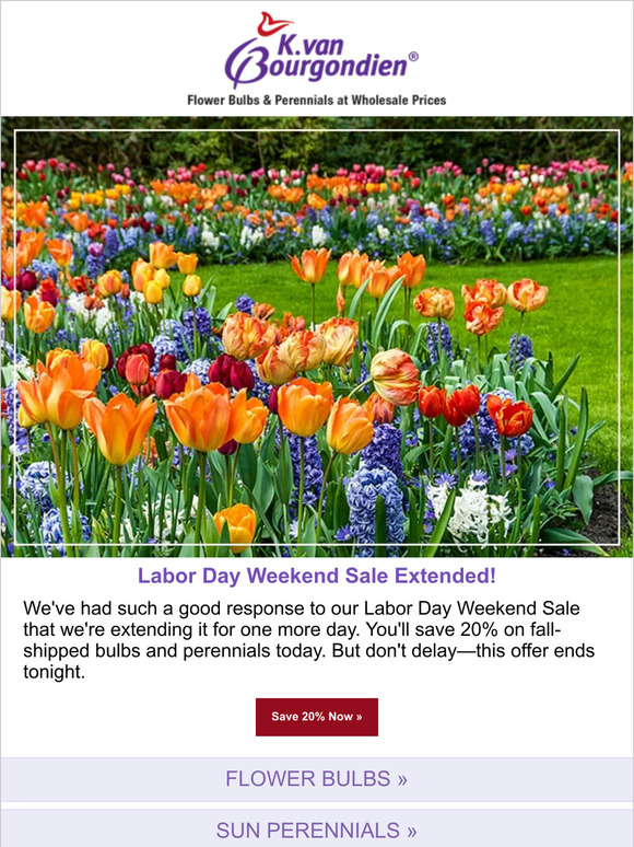 K. Van Bourgondien & Sons, Inc. EXTENDED! Free shipping on 129 orders