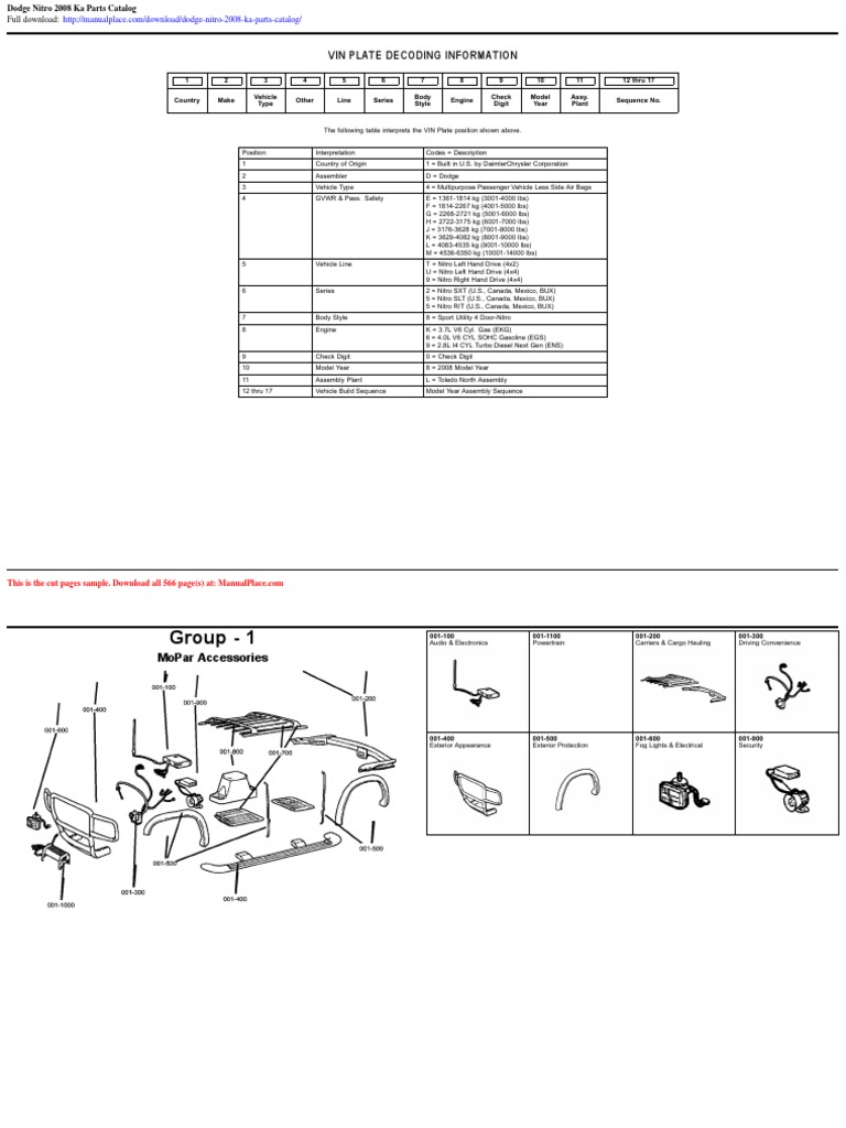 Dodge Nitro 2008 Ka Parts Catalog PDF Dodge Motor Vehicle