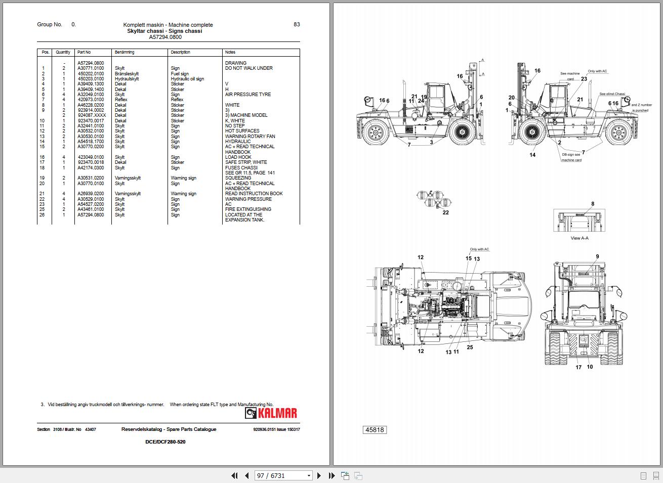 Kalmar Forklift DCE280520 DCF280520 Spare Parts Catalog EN DE