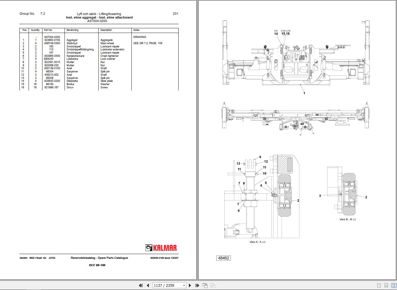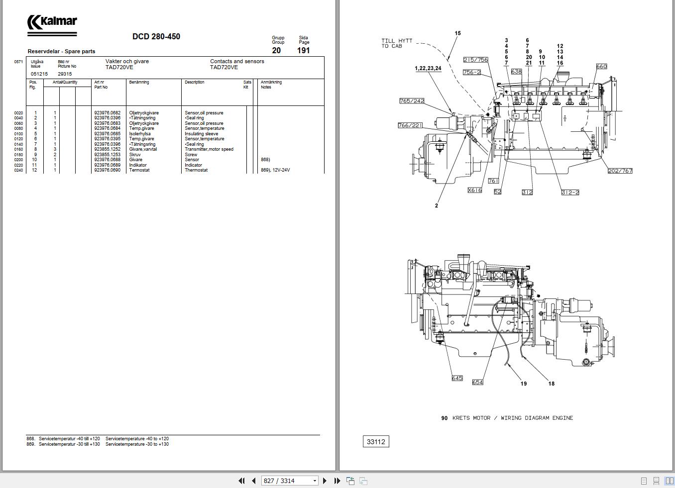 Kalmar DCE9045E7 Forklift Spare Parts Catalogue EN SV PDF