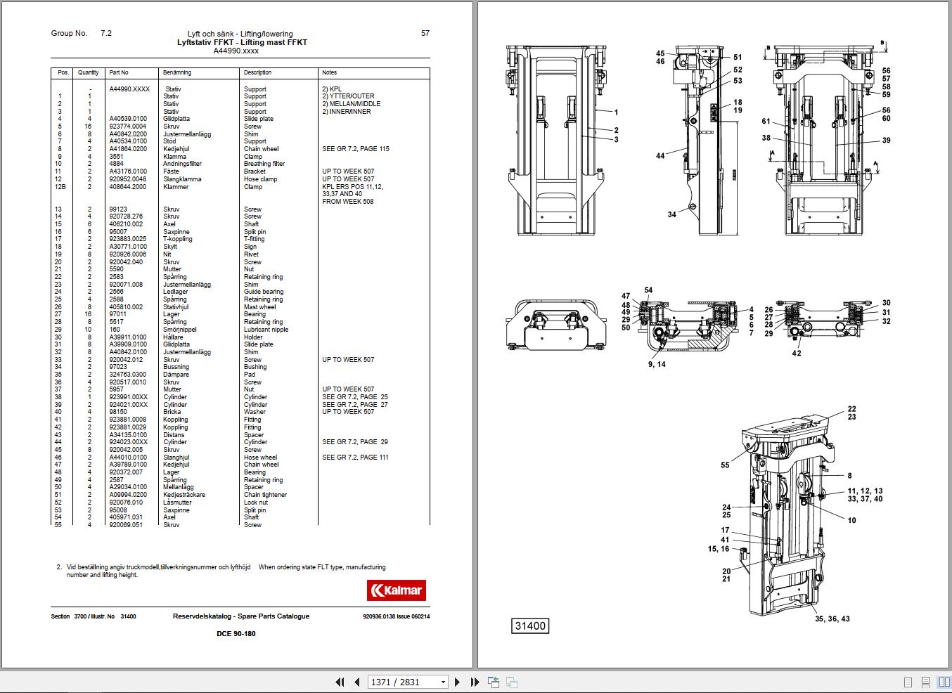 Kalmar Forklift 37,5 Spare Parts Catalogue Manual 920936.00240 PDF