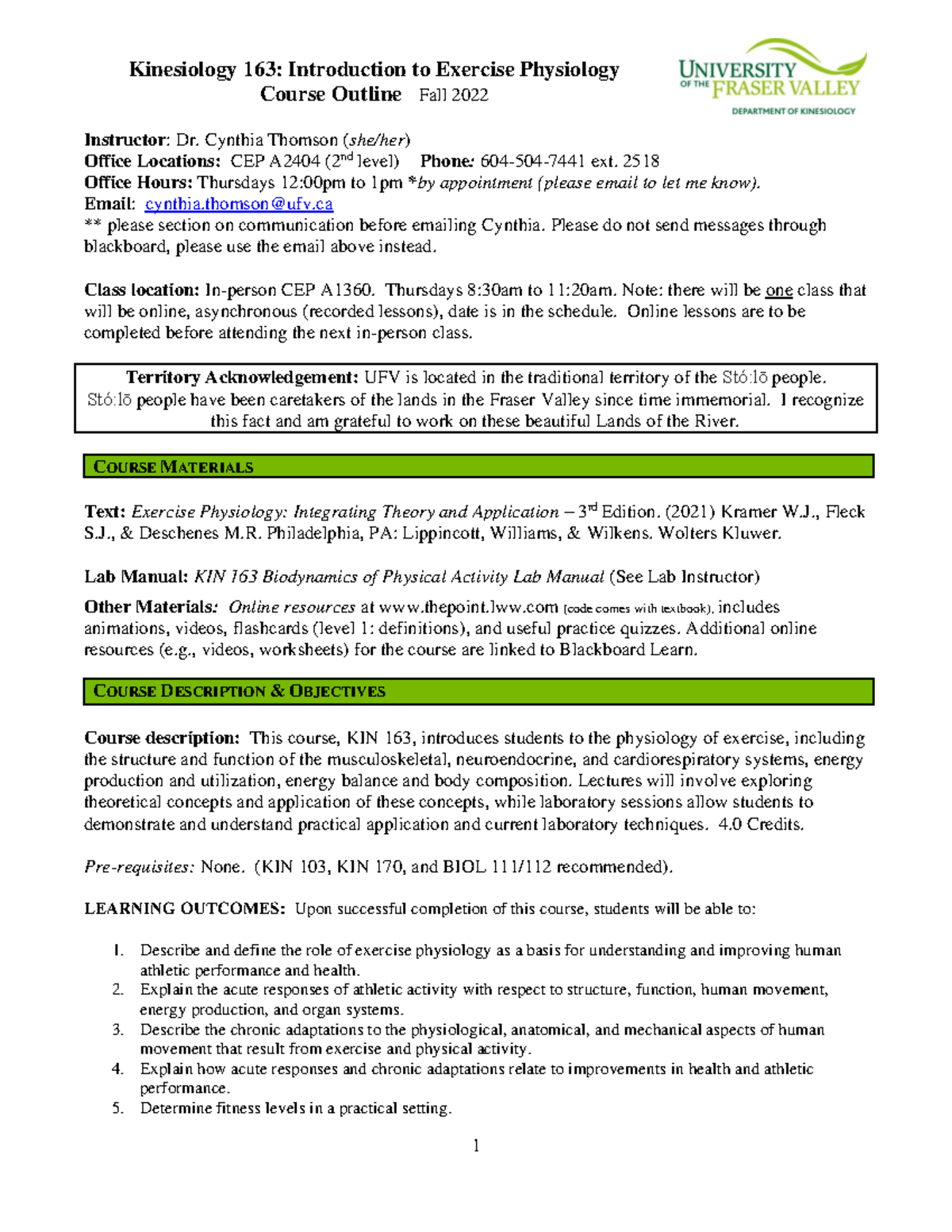 KIN163 Syllabus Guides and outlines Kinesiology 163 Introduction