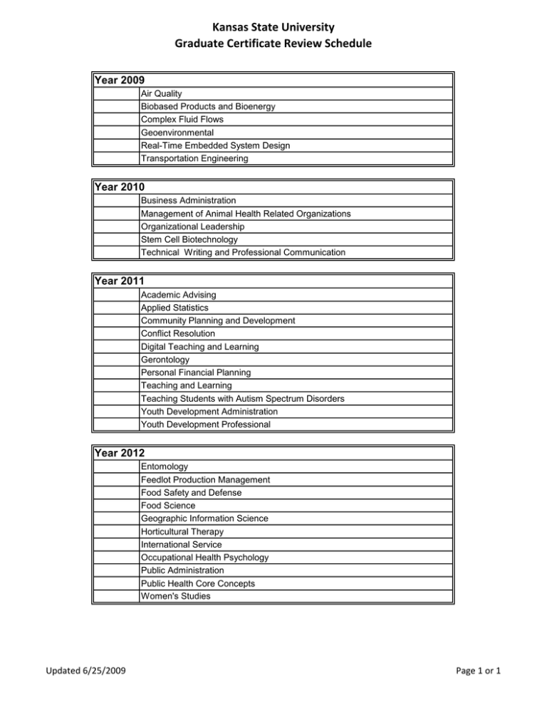 Kansas State University Graduate Certificate Review Schedule Year 2009
