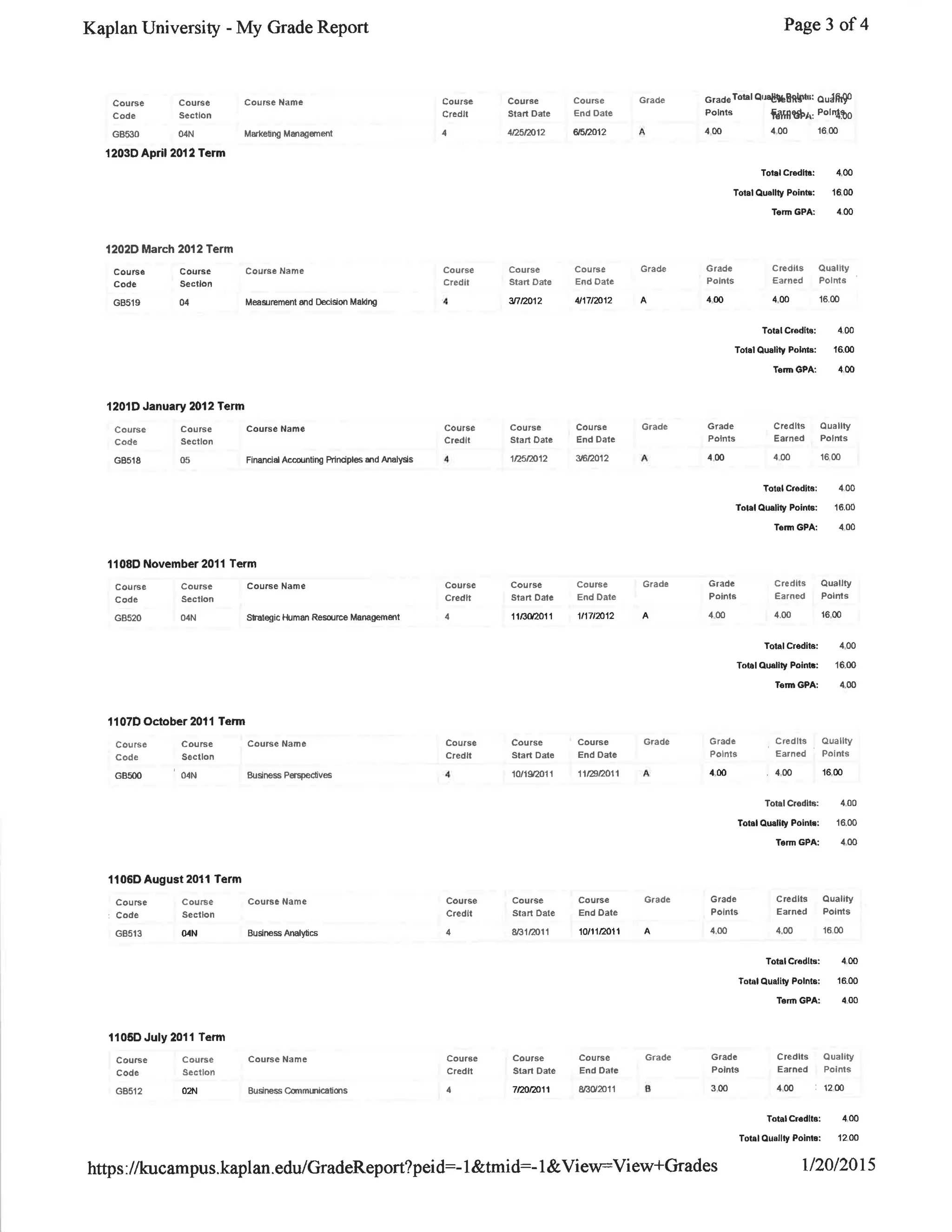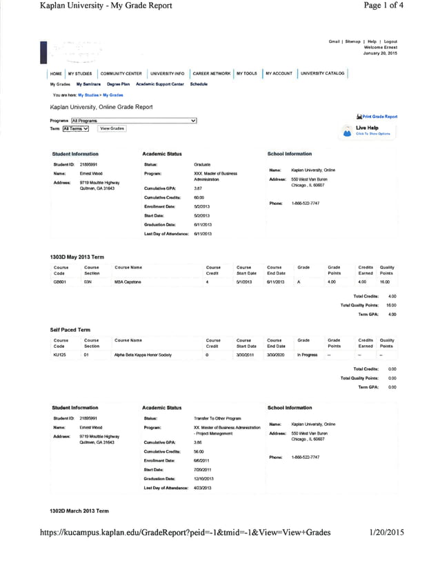 Official grades Kaplan University Master's Degree PDF Postgraduate
