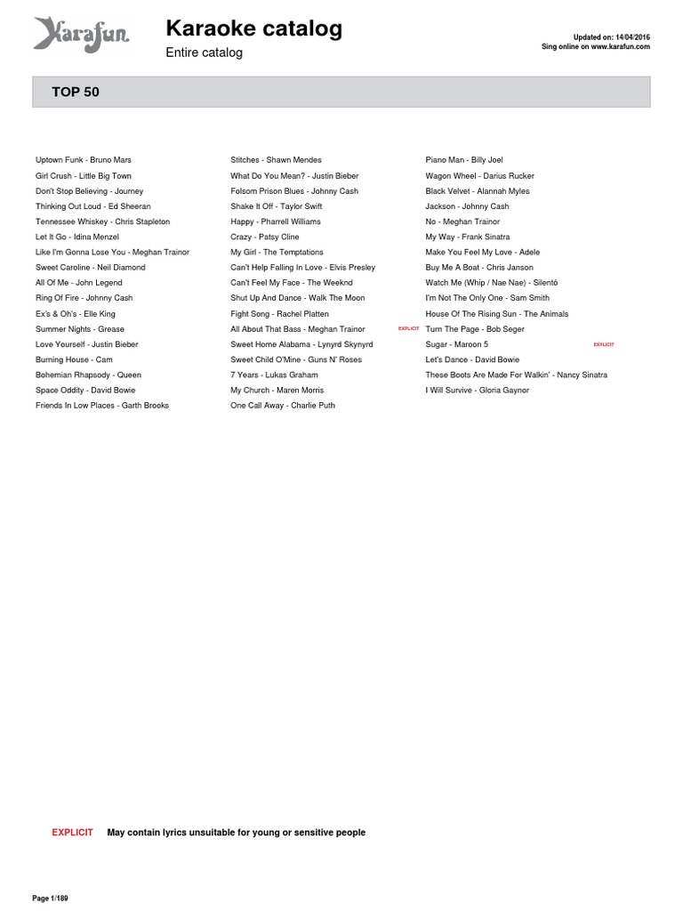 Karaoke Catalog PDF Sound Recording